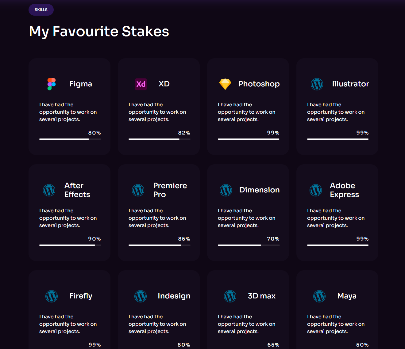 The design process followed a user-centered methodology, starting with wireframes and prototypes that focused on clear content hierarchy and engaging visual presentation. Special attention was given to creating a layout that balanced creativity with professionalism, ensuring that achievements, skills, and projects were presented in an accessible and visually appealing way.